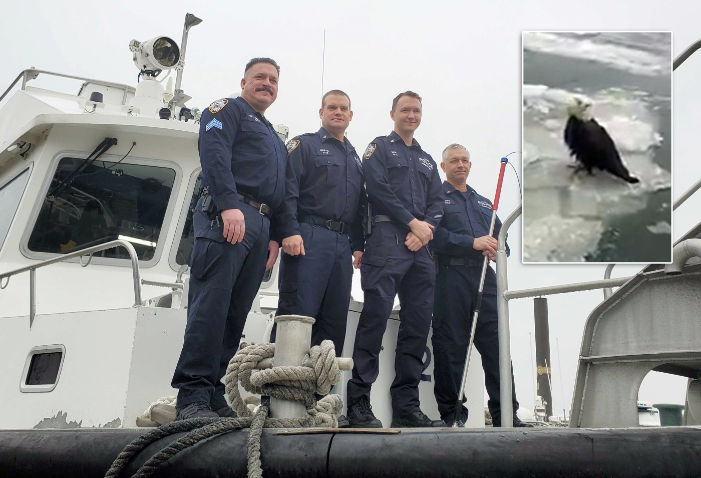 NYPD harbor patrol says eagle saved from icy Hudson seemed to be begging for hel...